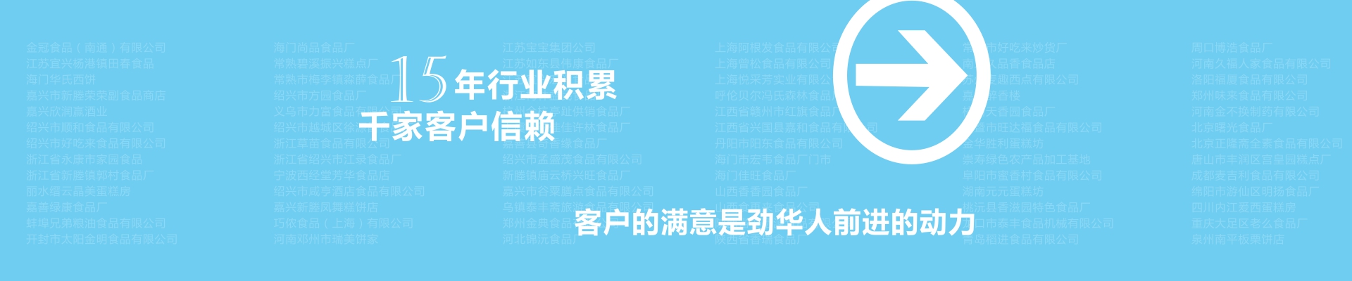 我們是天津做蓮蓉蛋黃月餅、老五仁月餅、桃酥、常規水果餡月餅的企業,我們在展會上看到勁華機械的月餅生產線,發現勁華的包餡成型一體機真的很不錯,把包餡和打餅成型在同一臺機上實現,經過現場測試,我們當天就定下來了,在車間安裝完成后感覺原本局促的空間寬敞多了,日程打掃清潔液很方便。